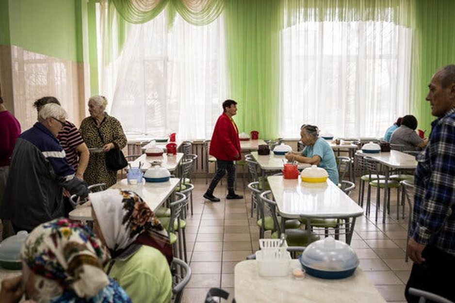 Dans un refuge de Mykolaïv, une ville du sud de l’Ukraine, des personnes qui ont récemment fui des villages assiégés se sont rassemblées pour déjeuner. Crédit… Jim Huylebroek pour le New York Times