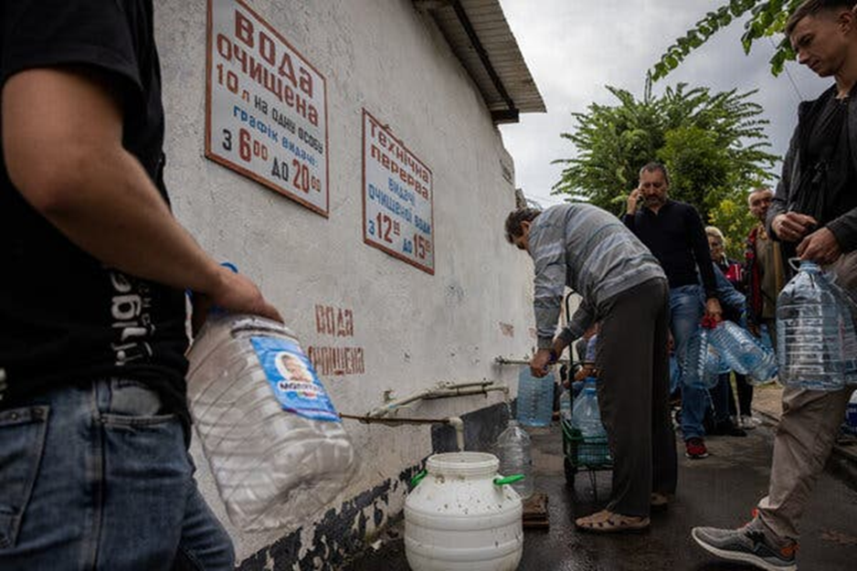 Des civils ont fait la queue pour de l’eau douce à Mykolaïv. Crédit… Jim Huylebroek pour le New York Times