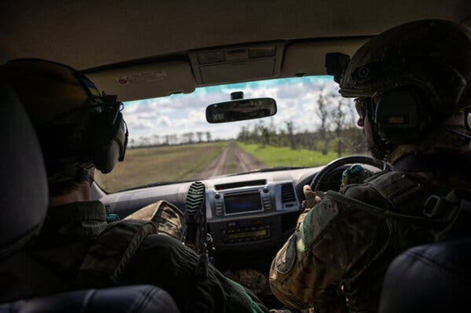 Des soldats volontaires ukrainiens patrouillent dans le sud de l’Ukraine. Dans quelques semaines, les pluies d’octobre arroseront cette zone et transformeront les routes en boues impraticables. Crédit… Jim Huylebroek pour le New York Times