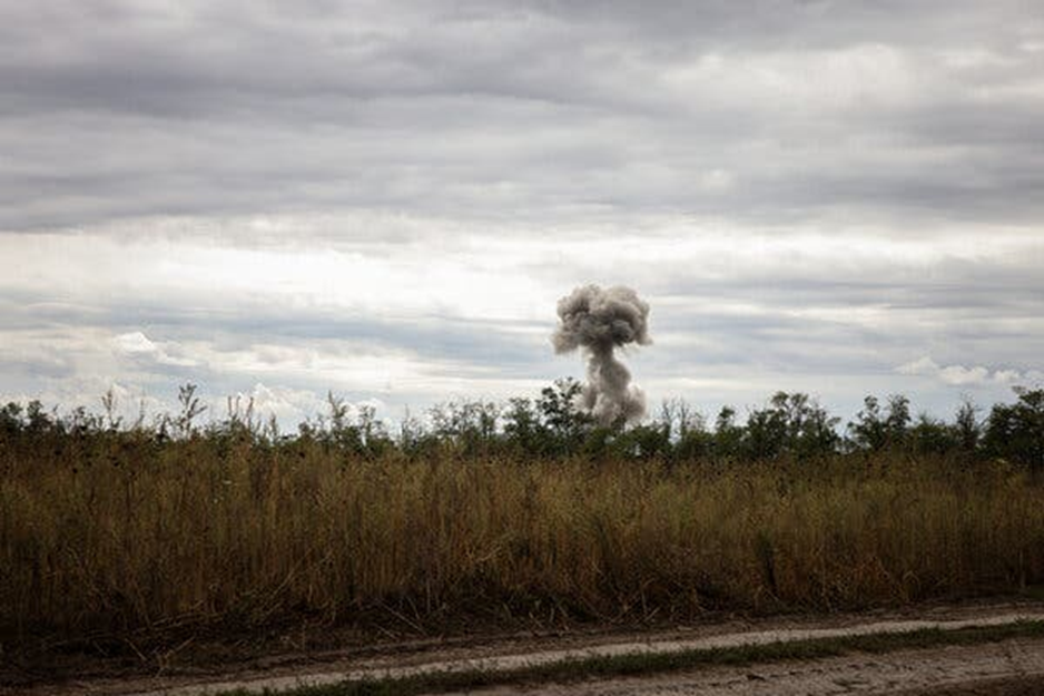 De la fumée et des débris après ce qui était probablement une frappe aérienne près d’une position militaire ukrainienne mardi. Les Russes ont beaucoup plus de munitions que les Ukrainiens et pilonnent leurs forces chaque jour. Crédit… Jim Huylebroek pour le New York Times