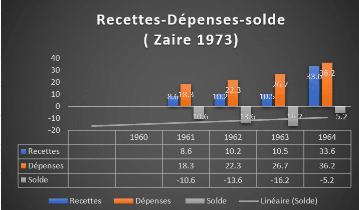 En effet, « Le financement monétaire du déficit conduisit à déverser sous forme de traitements, soldes, indemnités, subsides, avances et prélèvements de toute nature des sommes considérables dans une économie ou l’offre globale se réduisait. Aussi, le gonflement des revenus monétaires devait-il inéluctablement déclencher le processus inflatoire qui bouleversa profondément le fonctionnement de l ‘économie congolaise ». (cf. Hugues LECLERCQ, 1069, p. L’Économie congolaise de 1960 à 1965, p.51)