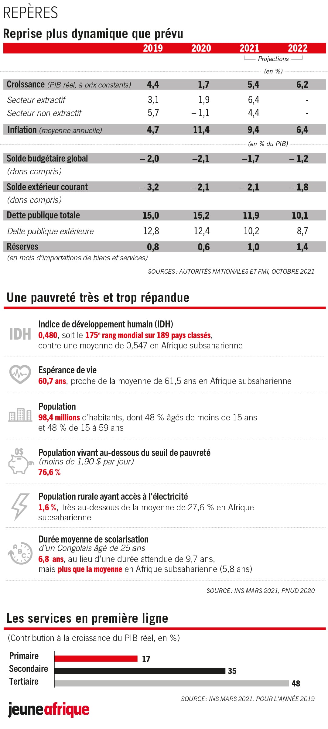 La croissance économique congolaise a dépassé les prévisions pour l’année 2021. Mais, entre les progrès réels, salués par les institutions de Bretton Woods, et les handicaps, endémiques ou conjoncturels, qui minent son développement, le pays peut-il tenir le cap ? Décryptage.