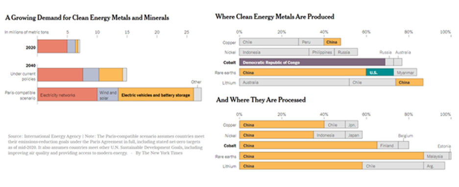 Des endroits comme la République démocratique du Congo, qui produit les deux tiers de l’approvisionnement mondial en cobalt utilisé dans les batteries, par exemple, entrent dans le genre de rôles autrefois joués par l’Arabie saoudite et d’autres pays riches en pétrole. Et une course entre la Chine et les États-Unis pour sécuriser les approvisionnements en métaux et minéraux pourrait avoir des implications de grande portée pour l’objectif commun de protéger la planète.