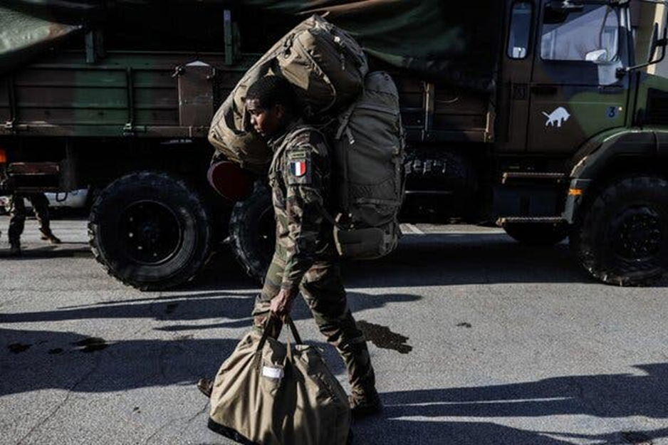 Un soldat Français à Brive-la-Gaillarde mardi alors que son régiment se préparait à partir pour la Roumanie. Crédit… Thibaud Moritz/Agence France-Presse — Getty Images